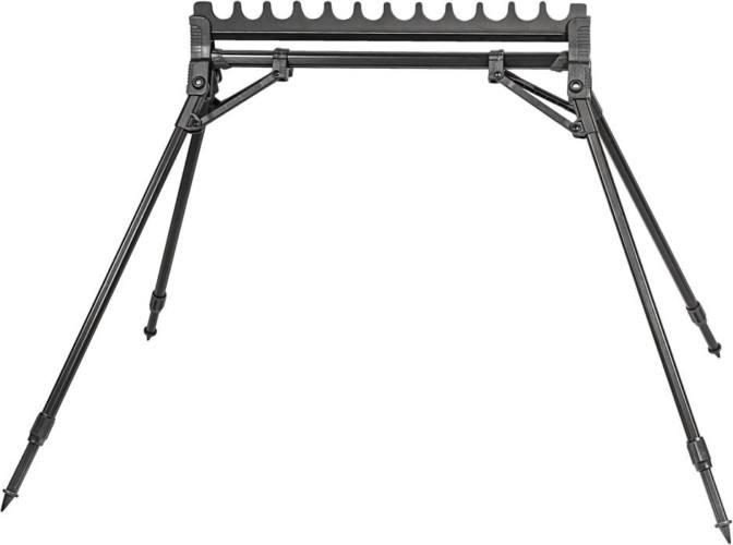 Minőségi, könnyű, de stabil, alumínium vázzal ellátott bottartó. Speciális kialakításának köszönhetően a lábak párosával rendkívül gyorsan ki és visszahajthatók. A teleszkópos kialakításnak köszönhetően a legszélsőségesebb terepviszonyok között is használható. A 12 helyes tároló sor a botok védelme érdekében EVA-ból készült.