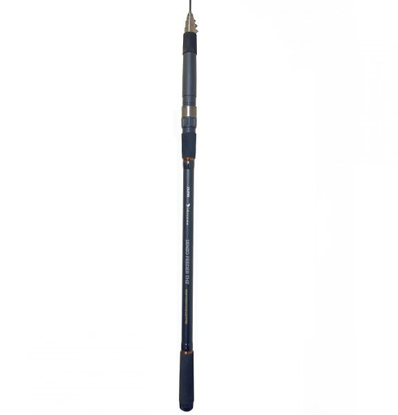 Medium erősségű, parabolikus akciójú, 80g dobósúlyú feeder horgászbot. Kiváló választás rövidebb és közepes távolságok meghorgászására. Anyaga a jól bevált CX1 Micro Pitch Carbon. Két részes botról van szó, a tagok csatlakozásánál extra erősítéssel. A két tag mellé még 3db - különbőző erősségű - üvegyanta spicc tartozik. A bot dupla lábas K-Sic gyűrűz