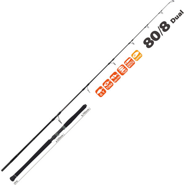 A Yamaga Blanks Blue Reef GT 80/8 Dual 2.495m Max 160g egy prémium minőségű horgászbot, amelyet kifejezetten a nagytestű tengeri halak, például a GT (Giant Trevally) horgászatára terveztek. Ez a bot a japán Yamaga Blanks cég terméke, amely híres a kiváló minőségű és megbízható horgászfelszereléseiről. A Blue Reef GT 80/8 Dual modell különösen népszerű a horgászok kö