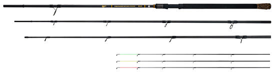 Medium erősségű, parabolikus akciójú, 80g dobósúlyú feeder horgászbot. Kiváló választás rövidebb és közepes távolságok meghorgászására. Anyaga a jól bevált CX1 Micro Pitch Carbon. Két részes botról van szó, a tagok csatlakozásánál extra erősítéssel. A két tag mellé még 3db - különbőző erősségű - üvegyanta spicc tartozik. A bot dupla lábas K-Sic gyűrűz