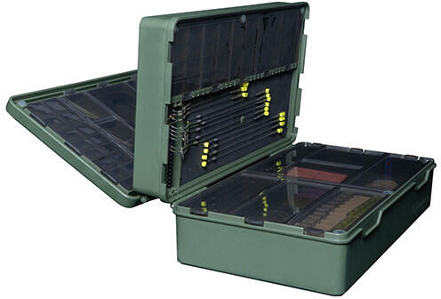 A Fox Edges Large Rig & Disc Box előketartó doboz tökéletes választás horgászok számára, akik rendszerezett és biztonságos tárolási megoldást keresnek szerelékeik számára. Ideális akár 111 előre megkötött szerelék és 58 krimpelt előke és 21 zig/chod előke tárolására. Az előketároló doboz 30 cm (12 inch) hosszúságú előkék tárolására lett tervezve, így s