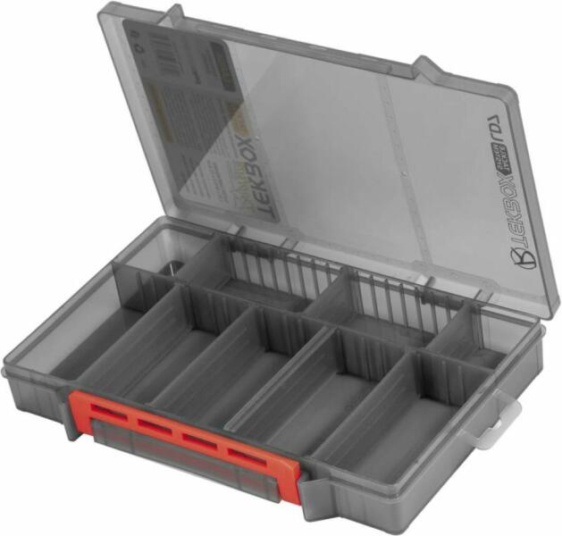 Könnyű, mégis masszív, szerelékes doboz, műcsalik és kisebb kiegészítők tárolására. A matt kivitel megvédi a doboz tartalmát a káros UV-sugaraktól. Ez a modell 7 kivehető osztólappal rendelkezik, így a doboz tetszés szerint berendezheztő. Jellemzői: Kiváló minőségű műanyagból készült Anyaga kompatibilis a puha csalik anyagával, nem lép reakcióba velük Mérete: 2
