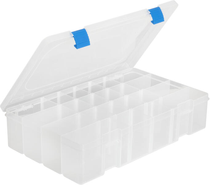 Pergető horgászoknak fejlesztett, klasszikus kialakítású pergető doboz. Anyaga twister és gumihal álló. Teljes egészében áttetsző, ezáltal tartalma a doboz kinyitása nélkül áttekinthető. A biztos záródást strapabíró csatok garantálják, melyek egy mozdulattal ki/be zárhatóak. Belső kialakítása a kivehető válaszfalaknak köszönhetően moduláris, sokrétűen varriá
