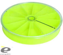 Nagyméretű, kör alakú horgos doboz, 11 fakkal, forgatható tetővel. A tetőn lévő ablak mérete pontosan igazodik a fakkok szélességéhez, így a tároló rekeszekből nem szóródhatnak ki, és nem keveredhetnek össze a horgok. A doboz átmérője 14 cm, magassága 2 cm.