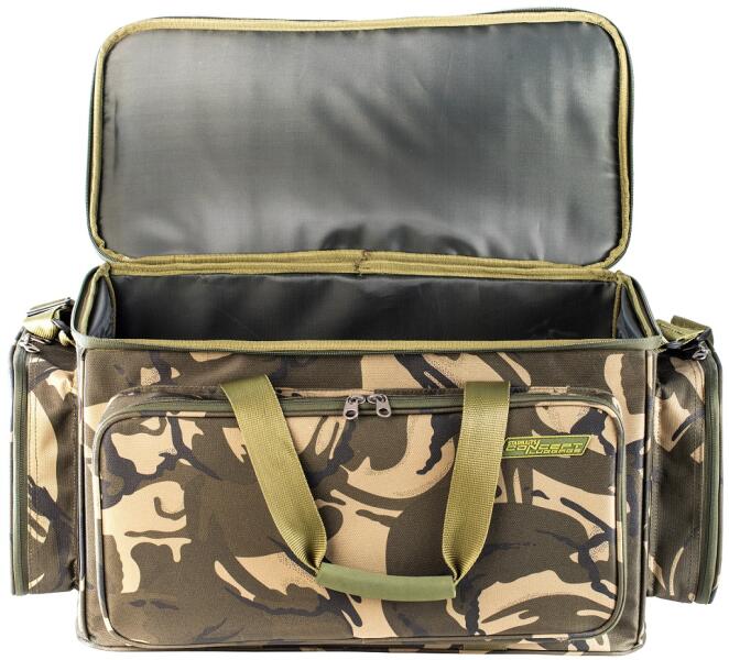 Starbaits Táska CAM Concept Carry Bag. Nagy táska, amelyben minden belefér. Fő kamra cipzáras fedéllel, 3 külső nagy cipzáras zseb. Luxus fogantyúk és állítható párnázott vállpánt kényelmes hordozásra. Szilárd, vízálló EVA alj. Robusztus szövet és erős X-Strong cipzárak. A táska taljesen bélelt így maximálisan védett a szálított felszerelésünk. DPM terepminta.