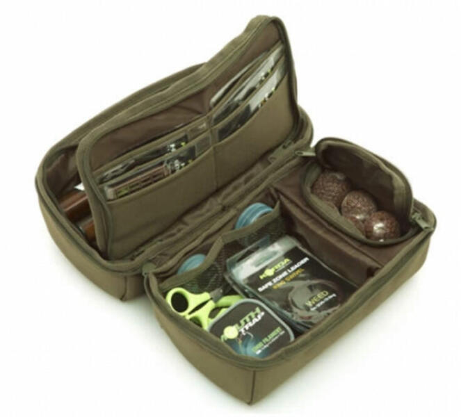 Ez a nagy, multifunkcionális táska rengeteg tárolóhelyet kínál ruházat és egyéb kiegészítők számára. Két nagy zsebbel rendelkezik mindkét oldalán és egy extra nagy elülső zsebbel a leszúróknak, kapásjelzőknek. A PVC alja megakadályozza a nedvesség behatolását a talajról. A táska úgy lett kialakítva, hogy könnyen elhelyezhető legyen a pontyozóágy alatt. Párnázo