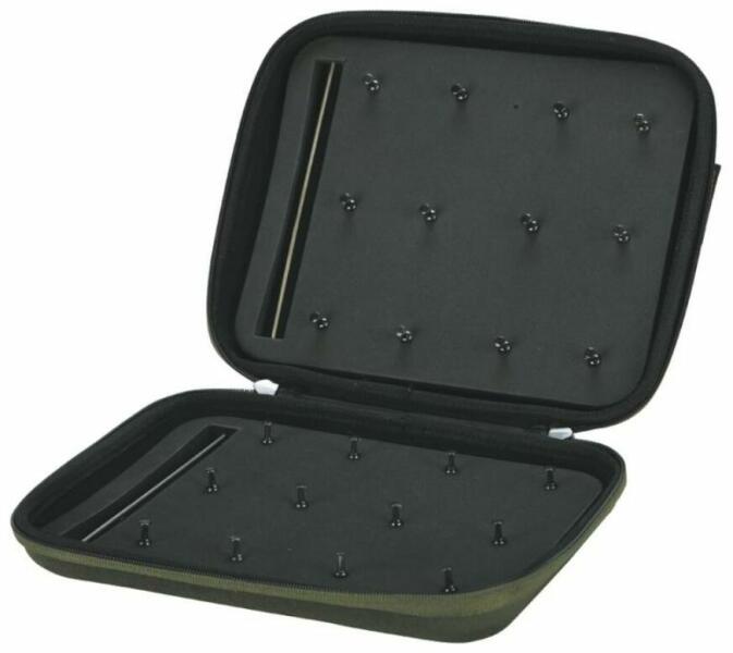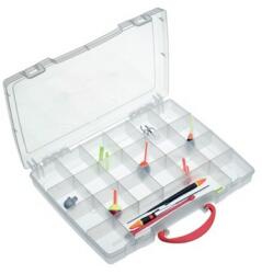 Maximálisan átgondolt kialakítású doboz, mely tökéletesen alkalmas a horgászathoz szükséges aprócikkek és előkék áttekinthető tárolására. Mérete 35x24x5,5 cm, így a legtöbb hátizsákban kényelmesen elfér. Erős mágnesekkel záródik, ugyanakkor egy szempillantás alatt kinyitható. Míg az egyik szárnya 28 osztatú, melyből 26 zárható, addig a másik oldal nagy mennyi