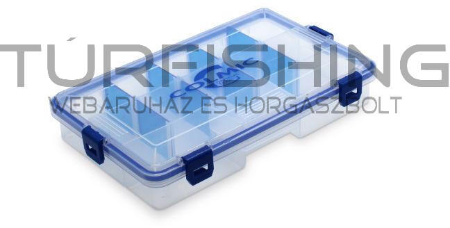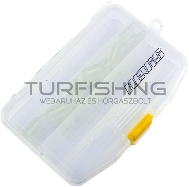 Négysoros, átlátszó szerelékes doboz. Az osztások tetszés szerint variálhatóak. Akasztófüllel, erősített zárócsattal. Ha szeretné aprócikkeit, műcsalijait, etetőkosarait rendezetten tárolni, ez a doboz remek választás. Méret: 14x10x2,3 cm