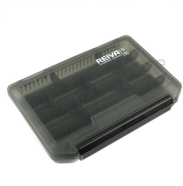 Erősített, négysoros pergető szerelékes doboz. A szokásos szerelékes dobozokhoz képest vastagabb és erősebb anyagú, meglehetősen masszív tároló. Az osztások tetszés szerint variálhatóak. Akasztófüllel, erősített zárócsattal. Füstszínű, magas UV állósággal. Méret: 24,5x19x4 cm