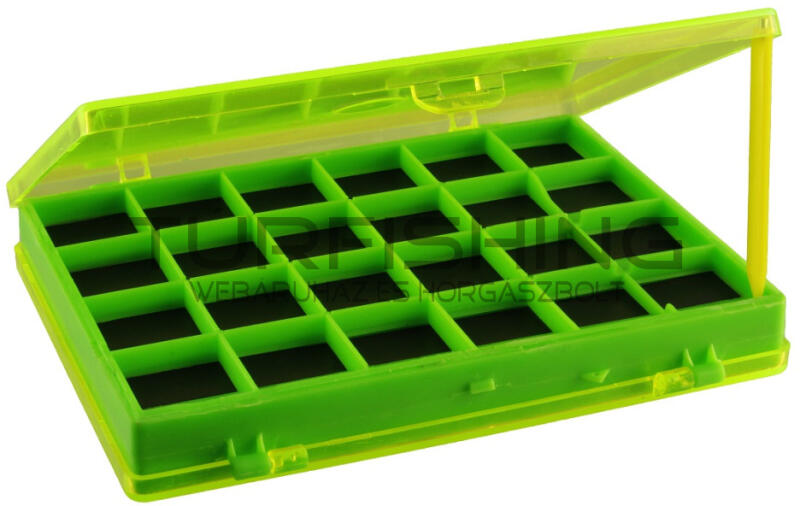 Nagy mennyiségű horog egyidejű tárolásásra alkalmas, dupla mágneses tárolódoboz. A mágneses betét megakadályozza, hogy kihulljanak a horgok a dobozból. A 44 rekesz garantáltan elegendő az összes típusú és méretű horgaink rendszerezéséhez. Méret: 14,5x10,5x2 cm