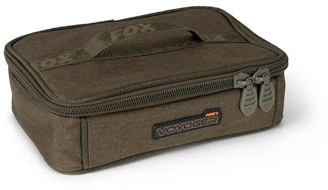 Fox Voyager Szerelékes Táska L 26,5x8x17cm : Ideális apróbb szerelékek, spod-ok tárolására. Cipzáras hálós zseb a fedélben A táska könnyű és kényelmesen hordozható Nagy teherbírású dupla 10 mm-es cipzárral Kopásálló és vízálló 300D kezelt poliészter anyagból A Fox Voyager Szerelékes Táska M tökéletes megoldás a horgászok számára, akik aprócikkek, például s