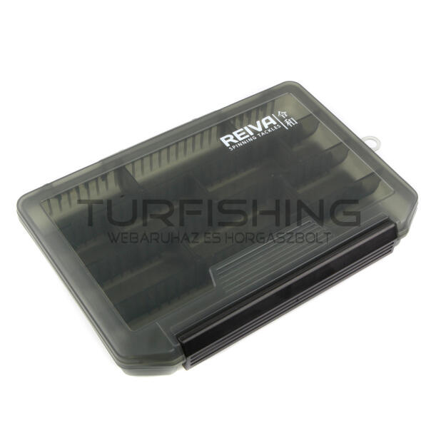 Erősített, négysoros pergető szerelékes doboz. A szokásos szerelékes dobozokhoz képest vastagabb és erősebb anyagú, meglehetősen masszív tároló. Az osztások tetszés szerint variálhatóak. Akasztófüllel, erősített zárócsattal. Füstszínű, magas UV állósággal. Méret: 20,5x14,5x2,7 cm