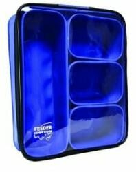 Sokoldalúan felhasználható EVA szett, amiben különböző pelleteket, élő- és szemes csalikat is tárolhatunk. A legnagyobb edény praktikus zárható fedőt kapott, így a csalik könnyen átláthatók és biztonságosan szállíthatók. 1 db cippzáros zárható tartó doboz (34,0x28,0x9,0cm) 1 db etetőanyagos doboz (33,5x10,5x8,5cm) 3 db csalis doboz (11,0x15,5x8,5cm)