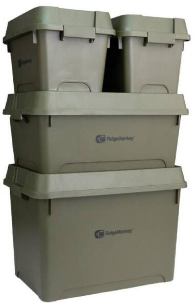 RidgeMonkey Armoury Stackable Storage Box tároló doboz Oldja meg az összes tárolási problémát az Armory Stackable Storage Box segítségével. Tökéletesek nagyszámú holmi tárolására és szállítására, ezek a dobozok időjárásállóak és tisztára törölhetők, így ideálisak horgászathoz és kültéri tevékenységhez. A nagy teherbírású konstrukció és a megerősített