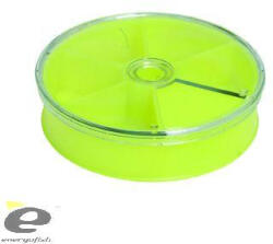 Kicsi, 5 fakkos horgos doboz, forgatható tetővel. A tetőn lévő ablak mérete pontosan igazodik a fakkok szélességéhez, így a tároló rekeszekből nem szóródhatnak ki, és nem keveredhetnek össze a horgok. A doboz átmérője 8 cm, magassága 2 cm.