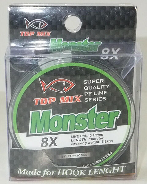 Magas minőségű, 8 szálból font, tökéletesen kőrszövött felsőkategóriás fonott előkezsinór család. Nagyteljesítményű, a 8 szálnak köszönhetően teljes hosszában tökéletesen kör keresztmetszetű a zsinór. Zöld színe beleolvad a környezetébe, a halak számára szinte láthatatlan. 10 méteres kiszerelésben kerül forgalomba. Átmérő/szakítószilárdság:- 0,08mm - 5