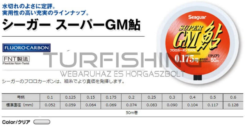 Seaguar Super GM Ayu Fluorocarbon 50m Új típusú fluorkarbon zsinór, a japán fluor-karbon technológia vezető gyártójától! Az új Seaguar GM AYU mindenhol megállja a helyét, ahol szükséges a víz alatti láthatatlanság maximális biztosítása. Ez a rendkívül alacsony láthatósági viszony sokkal természetesebb megjelenést biztosít, és sokkal kevésbé valószínű, hogy megij