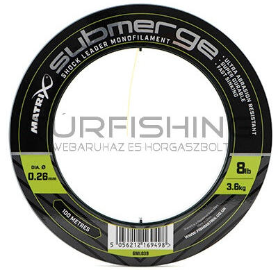 Matrix Submerge Shock Leader Monofilament 100M extrém tartós és gyorsan süllyedő előtétzsinór. Ideális akadós, köves helyek horgászata során Ultra kopásálló monofil zsinór 100m-es kiszerelésben kapható Elérhető méretek 8lb (0.26mm), 10lb (0.28mm), 12lb (0.30mm)