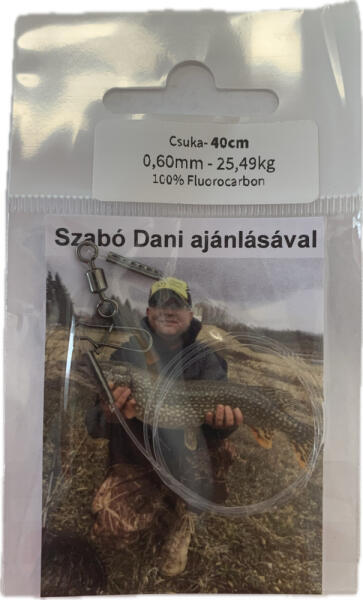 Dani Fluorocarbon Előke Csuka 0,60mm 25,49kg 40cm 100% Trabucco fluorocarbon zsinórból Csukához Mindenféle műcsalihoz használható Sok éves tapasztalat alapján összeállított pergető előkék . 100% trabucco fluorocarbon saltwater előkezsinórból készültek. A fluorocarbon lényege, hogy ugyanolyan a fénytörés e mint a víznek, tehát a halak számára láthatatlan. Ezt olyan hal
