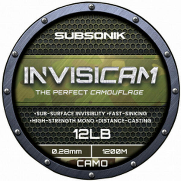 Sonik Subsonik Invisicam zsinór - Integrált álcázott camo színű prémium monofil főzsinór - A nagy kontrasztú terepminta megzavarja a körvonalakat a maximális láthatatlanság érdekében - Invisicam zöld-barna-fekete színezés - Szuper sima és puha, kevés memóriával - Nagy kapacitású1200 m-es kiszerelés - Magas csomótűrés - Kopásálló - Ultra erős