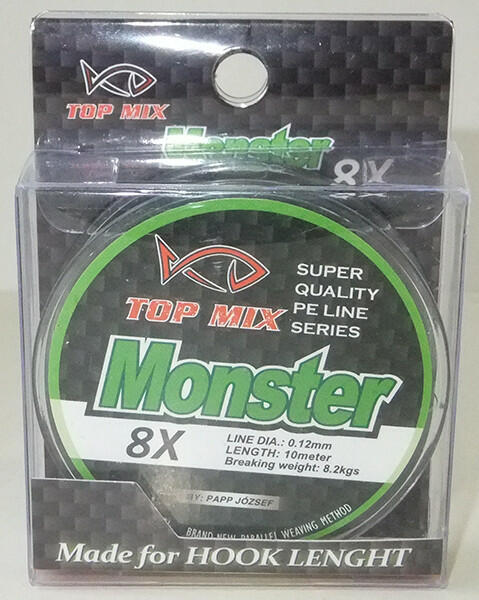 Magas minőségű, 8 szálból font, tökéletesen kőrszövött felsőkategóriás fonott előkezsinór család. Nagyteljesítményű, a 8 szálnak köszönhetően teljes hosszában tökéletesen kör keresztmetszetű a zsinór. Zöld színe beleolvad a környezetébe, a halak számára szinte láthatatlan. 10 méteres kiszerelésben kerül forgalomba. Átmérő/szakítószilárdság:- 0,08mm - 5