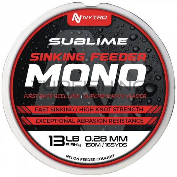 Nytro Sublime Sinking Feeder Mono zsinór 150m A Nytro Sublime Sinking Feeder Mono kifejezetten a method horgászathoz készült. Ahogy a zsinór merül, az átlátszó, mély bronz szín a legtöbb háttér előtt eltűnik. Erős, mégis rugalmas, így jól dobható és magas csomószilárdságot kínál. Ideális főzsinórként, de ugyanilyen jól alkalmazható mint dobóelőke, mivel jól nyú