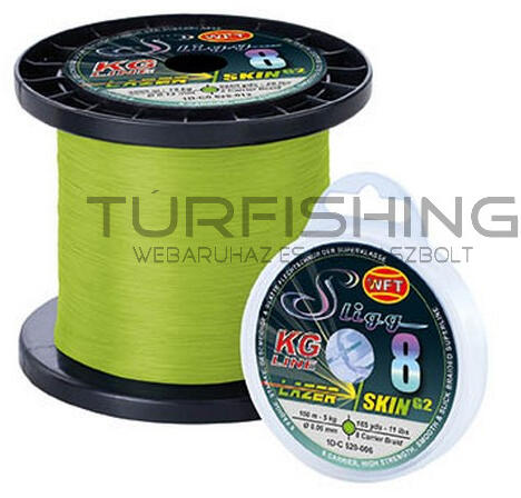 WFT Sligg 8 Chartreuse fonott zsinór A WFT SLIGG 8 LAZER SKIN G2 prémium 8 szálból álló fonott zsinórunk a legnehezebb helyzetekre kínál megoldást. A legjobb, teljesen kör keresztmetszetű 8 szálból álló fonatot kínálja a valaha gyártott legsimább és legpuhább felülettel. Hangtalanul és szinte súrlódás nélkül siklik át a gyűrűkön keresztül – és minden eddiginél