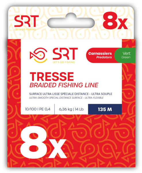 Sert Tresse 8x SRT Moss Mohazöld Fonott Zsinór 0,28mm 135m 8 szálas Ideális pergető zsinór Ultra kopásálló Alacsony rugalmasság A Sert Tresse 8x SRT Moss Mohazöld fonott zsinór egy kiváló minőségű, nyolc szálas fonott zsinór, mely különleges tulajdonságokkal rendelkezik. Az ideális pergető zsinórként funkcionál, kifejezetten tervezve a pergető horgászat igényeinek kie