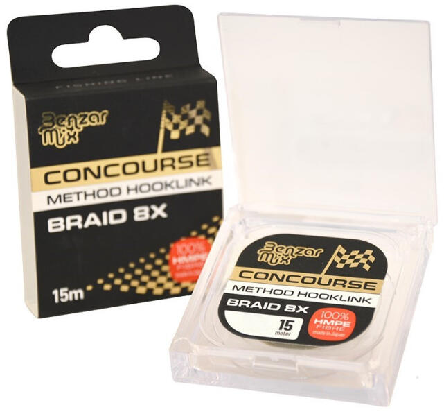 Benzár Concourse Braided Hooklink Előkezsinór 15m 0,08mm 8 szálból szőtt, professzionális fonott zsinór Kiváló kopásállóság Lágyság Alacsony láthatóság 15 méteres kiszerelés A Benzár Concourse Braided Hooklink egy prémium minőségű 8 szálból szőtt fonott előkezsinór , ami rendkívül erős és kopásállóvá teszi. A lágysága pedig biztosítja, hogy könnyen formá