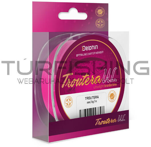 A Delphin Troutera UL egy rendkívül vékony, ugyanakkor rendkívül erős fonózsinór, amelyet pisztráng és kisebb ragadozó halak fogására terveztek. Vékony fluorkarbonnal kombinálva szinte láthatatlanná válik a víz felszíne alatt, ami lehetővé teszi, hogy a legóvatosabb ragadozókat is átverje kristálytiszta vízben. A zsinór nagyon gyorsan továbbítja a kapást a halaktól