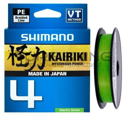 Shimano Kairiki 4 150m 0.10mm 6.8kg M Green A találkozás módja és a nagyon erős és sima polietilén szálak biztosítják a tökéletes dobást hosszú távokon is. A zsinór 0,06 mm és 0,315 mm közötti átmérővel kapható, extrém erőssége pedig akár 29,8 kg is lehet. Nagyszerű tulajdonságokkal rendelkezik, amelyek mind az édesvízi, mind a sósvízi pergetéshez hasznosak leszne