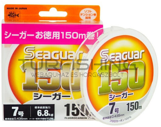 Seaguar 150 méter Fluorocarbon zsinór A SEAGUAR 150 Fluorocarbon egy egyedülálló modell, amelyet a tengeri használaton túl, az igazán köves, akadós, extra igénybevételű terepre terveztek. Az egyedi, innovatív anyag használata teljes láthatatlanságot biztosít a vízben, aminek köszönhetően a kapások száma, különösen a passzív ragadozóké, jelentősen megnő. A fluornak v