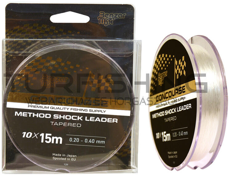 Benzár Concourse Method Shock Leader A nagytávolságú horgászat eszközigénye mára rendkívüli mértékben kiszélesedett. Ahhoz, hogy meg lehessen dobni a legnagyobb távokat , mindenképpen szükséges dobóelőke használata. Jelent termék egy felvastagodó monofil dobóelőke, ami maximálisan megfelel a modern method feeder horgászat igényeinek. Három különböző méretben érhet