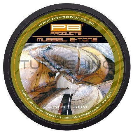 A PB Products Mussel 2 Tone magas kopásállóságú, különlegesen lágy kevlárral kombinált előkezsinór. A rendkívüli terhelhetősége miatt használhatjuk akár előtétzsinórnak (snag leader) is. Extrém nehéz, kagylós terepre ajánljuk. A zsinór 20 méteres kiszerelésben, 35 lb (15,88 kg) és 45 lb (20,41 kg) szakítószilárdságú változatban kapható.