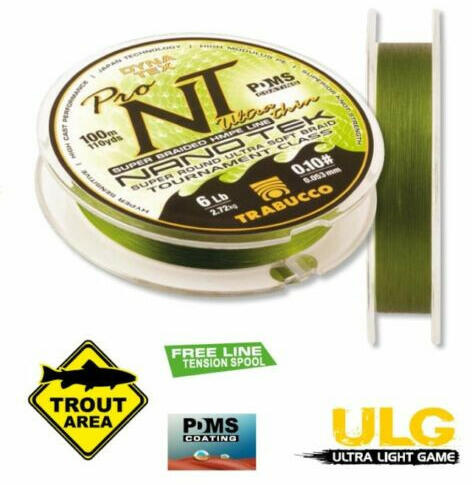 Tulajdonságai : Anyaga: nano technológiával gyártott Ultrafine High Modulus PE Elsősorban UL pergetésre és pisztrángozásra tervezett fonott zsinór Super Hydrophobic PDMS membrán a maximális védelemért és megbízhatóságért Nagyon lágy, nyúlása nincsen, így a legérzékenyebb kapásokat is maradéktalanul továbbítja ami az UL pergetés alap kritériuma Halk futás a gyűrűk