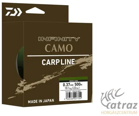 Daiwa Infinity Camo Green 0,37mm 840 méter - Daiwa Süllyedő Monofil Horgász Zsinór Ezzel az új süllyedő Infinity pontyozó zsinórral a DAIWA igazi újdonságot fejlesztett ki. A zsinór 1.2-es sűrűségének köszönhetően jelentősen nehezebb a víznél (kb. 0.99), ezért horgászatkor lesüllyed a vízfenékre. Színezete szabálytalanul váltakozik a teljes hosszában, így észreveh