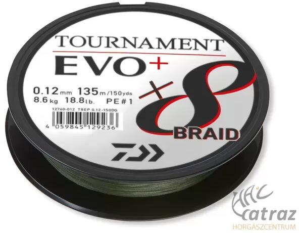 Daiwa Tournament X8 Braid Evo+ Dark Green Fonott Pergető Zsinór - Daiwa 135 méter 0,12mm A közismert Daiwa Tournament 8 Braid-et az EVO+ kivitelben tovább optimalizáltuk. Különös figyelmet kapott a felületkezelése egy magasabb szilikontartamú bevonattal. Így a zsinór súrlódási ellenállása még alacsonyabb dobáskor. Ez még jobb dobástávokat jelent a jövőre nézve. Ezen fel