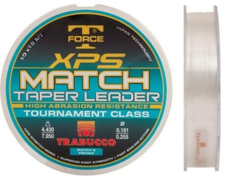 Amikor nagyobb távolságok elérésre a követelmény, akkor nagyon hasznos a távdobó előkék használata, melyek egyik legbriliánsabb tagja a TF XPS MATCH TAPER LEADER, mely átlátszó és gyorsan süllyedő. Ez az előke 15 méter hosszú és speciális kialakítása van. A szerelék felőli oldala a vastagabb 9m-es szakasszal kezdődik. Ez a hossz elegendő arra, hogy a dobáskor fellép