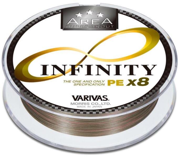 A Varivas Super Trout Area Infinity végtelen lehetőségeket kínáló PE zsinór. Hihetetlenül vékony, erős és tartós, 8 szálból fonott Super Premium PE (SP-PE) pergető horgászzsinór, mely rendkívüli érzékenységgel bír. A Varivas SP-F bevonata víztaszító réteget hoz létre a zsinór felületén, amely véd a vízfelvétel ellen, növeli a dobási távolságot és javítja a k