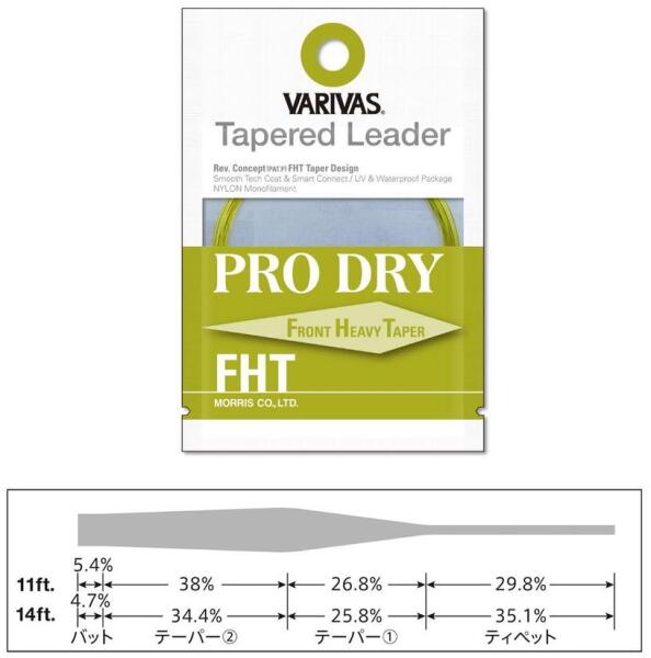A Varivas Tapered Leader Pro Dry FHT (Front Heavy Taper) koncepciója kiváló dobási teljesítményt nyújt. A horgászoknak gyakran nehéz a megfelelő helyre dobni a műcsalit, különösen a szél, a terep és más körülmények miatt. A jó dobás pozitív eredményeket hoz! A Pro Dry FHT tervezése segít a dobásban, biztosítva az előnyös, erőteljes fordulatot és a pontos irányítá