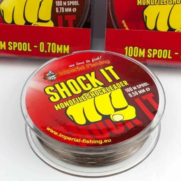 Az Imperial Baits Shock It Super Shockleader világosbarna színű, így minden aljzathoz passzoló, nagy teherbírású, jó csomótűrő képességekkel rendelkező monofil előtétzsinór. Kemény zsinórfelület és extra kopásállóság jellemzi, különösen ajánlott akadós vízeken vagy kavicsbánya tavakon. Botonként 25 méter használata javasolt. Kiszerelés: 0,50 ill. 0,60 / 100 mé