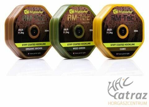 Ridgemonkey Bevonatos Fonott Előkezsinór - RM-Tec Stiff Coated Hooklink 20m 35LB Camo A RidgeMonkey RM-Tec Stiff Coated Hooklink előkezsinór a RidgeMonkey újdonsága. A fonott előkezsinór merev, ellenálló, eltávolítható bevonatot kapott. Merevségének köszönhetően jól dobható, kiegyensúlyozott illetve lebegő csalik felkínálása esetén jól "eltartja" a csalit az előkétől.
