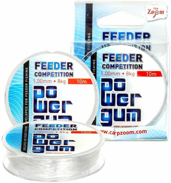 Új fejlesztésű feeder erőgumi. A 0,6-0,8 mm-es változat kárász és keszeg horgászathoz a 1,0-1,25 mm-es ponty, amur és folyóvízi horgászatokhoz ajánlott. Víztiszta anyagból készült. Erőhatásra fokozatosan keményedik. Tájékoztató: A termék horgászati célra készült, gyermektől távol tartandó.