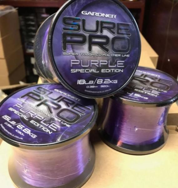 A Sure Pro Purple a Gardner Tackle 2017-ban debütált újdonsága, amely a legújabb fejlesztésű Co-Polymer főzsinór. Különleges tulajdonsága, hogy az egyedi gyártási technológia révén rendkívüli rugalmasságánál fogva is megőrzi kiváló csomó tűrőképességét, magas szakítószilárdságát és fantasztikus erejét. Még a legkeményebb fárasztásoknál is mindvégig tök
