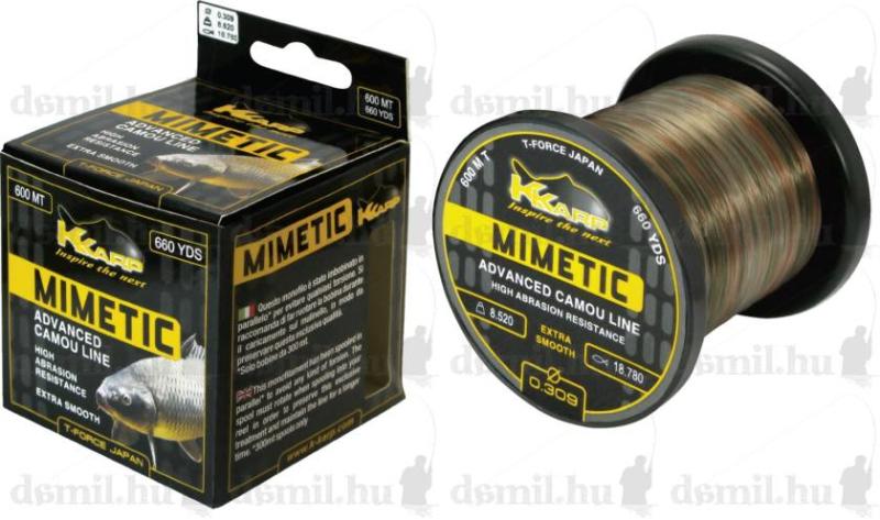 K-KARP MIMETIC Tipikusan a pontyhorgászatra szánt monofil. Nagy távolságokon történő horgászatra fejlesztett damil, legyen az dobós vagy akár behúzós technika. Az optimális nyúlás a nagy távolság ellenére biztos akadást eredményez. Leginkább a növényzettel benött vizekre logikus megoldás, mert a terepbe illő barnás-zöldes váltakozó szín gyanútlanná teszi még a leg