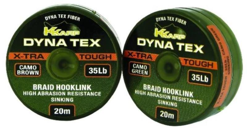 A K-karp DynaTex Xtra Tough, ahogy a neve is árulkodik, egy speciális, merevített fonott előkezsinór. Tervezői elismert pontyhorgászok, akik gondoltak az iszapos, hinaras, ill. köves, kavicsos meder aljzathoz alkalmazkodó, álcázott megoldásokra is. Ez azt jelenti, hogy barnás és zöldes árnyalatot lehet választani 3-3 erösségben. Amiben azonban teljesen megegyeznek, hogyaz össze