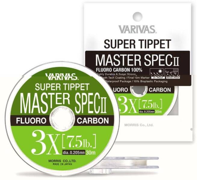 A Varivas Master Spec Fluorocarbon tippet újjászületett egy sima tech bevonattal! A Varivas Super Tippet Master Spec II Fluoro rendkívül érzékeny. Érzékeli a finom kapásokat. Víztiszta színe szinte láthatatlan a vízben, ezért kiválóan alkalmas a gyanakvó halak megcélzására. Emellett jelölésekkel látták el, melyek jelzik a maradék 10 méternyi zsinórt. Feljavított egyens