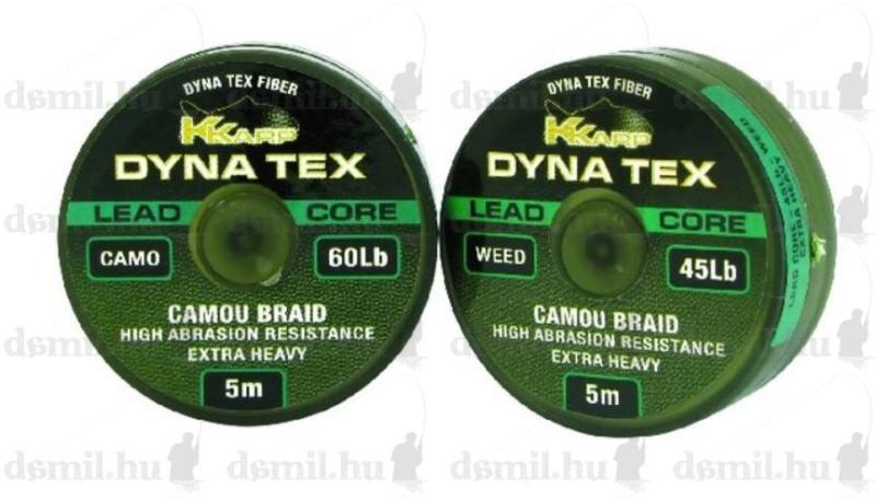 A K-Karp Dyna-Tex Lead Core két különböző, a mederaljzathoz illő változatban készült. A lead cor előkére jellemző rendkívüli ellenállás, kopásállóság és a nagyobb átmérő. Lágyságának és rejtő színeinek (sóder, növényzet) köszönhetően gyakorlatilag teljesen láthatatlan még a sekély, tiszta vízben is. A fonot csőben lévő ólomhuzal tökéletesen fixálja, m