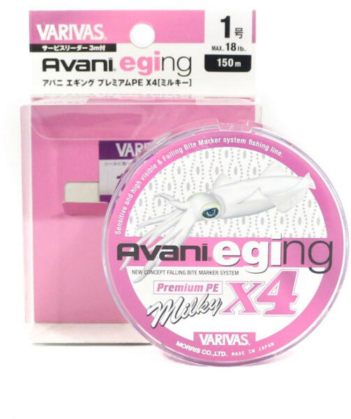 Varivas Avani Eging Premium PE X4 (Premium PE) Átmérő: PE#0.8 (0,148mm) Szakító szilárdság: 15LB (6,8kg) Szín: rózsaszín (jelölő vonalakkal) Kiszerelés: 150m Japánban készül Varivas Co. , Ltd Az új „süllyedő kapásjelzővel! A VARIVAS innovatív PE X4 technológiáját használják, miszerint 4 szálat sűrű szövéssel kötni, amely stabilitást és nagy erősséget biztosí