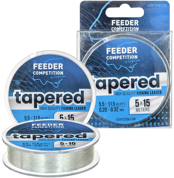 Különleges, hosszában vastagodó előkezsinór a Feeder Competition termékcsalád kínálatában. Az elvékonyodó profilnak köszönhetően az előke könnyebben folyik át a gyűrűsoron, ezzel növelhető a dobás hatékonysága. A végszerelék felé vastagodó átmérő erőteljesebb, hatékonyabb fárasztást biztosít, illetve csökkenti a halvesztés esélyét. Kimondottan feeder és f
